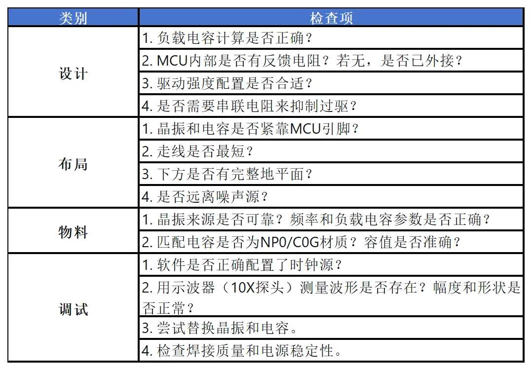 MCU配置:确认MCU的振荡器模式配置正确(例如,是HSI还是HSE,是高增益模式还是低增益模式)。某些MCU需要软件配置正确的驱动强度。